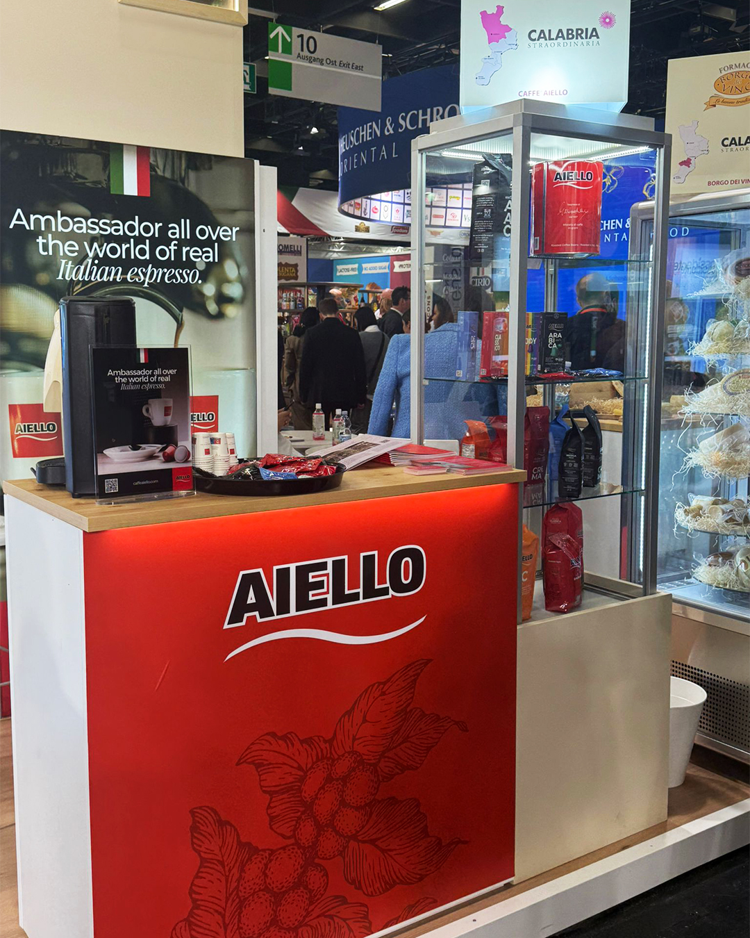 A supporto della consideration, abbiamo strutturato brochure e cataloghi, insieme ad un set di video corporate che racconta in modo semplice il percorso “dal chicco alla tazzina”. Da sempre presidiamo anche i momenti culturali del calendario: dal 2007 curiamo le campagne di auguri di Natale e Capodanno sui principali quotidiani locali, consolidando la prossimità del brand al territorio. Ci occupiamo della realizzazione del merchandising nei bar che scelgono Caffè Aiello, così da estendere la presenza della marca là dove il prodotto viene realmente consumato. Abbiamo creato un impianto PED social con contenuti nativi multi-formato e in parallelo, supportiamo la crescita all’estero curando i materiali per le fiere internazionali, a tutela della coerenza del brand anche nei mercati export.